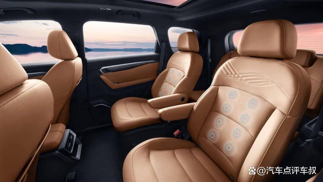 瑞虎9X的车身尺寸为4817/1930/1729(1741) mm,轴距2770mm,提供5/7座布局。虽然轴距略小于豪越L,但瑞虎9X的空间利用率同样出色。后备厢最大容积可达2065L,二三排一键放倒可秒变2.1m大床房。全系标配前排座椅加热和通风,高配车型提供前排10点按摩功能及“女王副驾”,二、三排座椅支持靠背电动调节,长途乘坐不易疲劳。