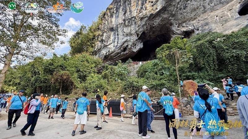 徒步活动在发令声中拉开序幕,参与者自王下乡出发,沿盘山步道缓缓而行,全程约12公里,途经皇帝洞、十里画廊等代表性景观。在皇帝洞内,钟乳垂落、天光渗漏,犹如走入一幅凝固了时间的喀斯特画卷;行至十里画廊,则见山形叠影、河水静流,沿途热带植被点缀崖壁,徒步队伍穿梭其间,仿佛成为这幅山水长卷中流动的风景。